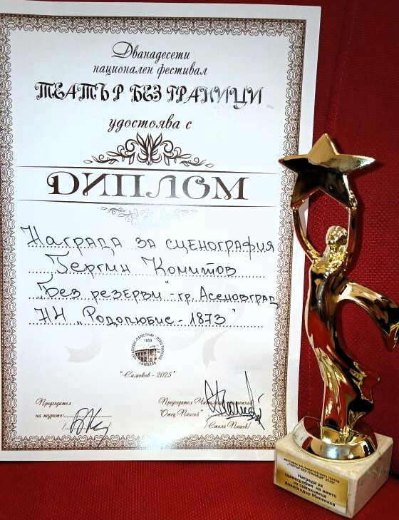 Първа награда и две номинации за театър „Арте“ към НЧ „Родолюбие“ – Асеновград. Отличията бяха спечелени от фестивал в Самоков.